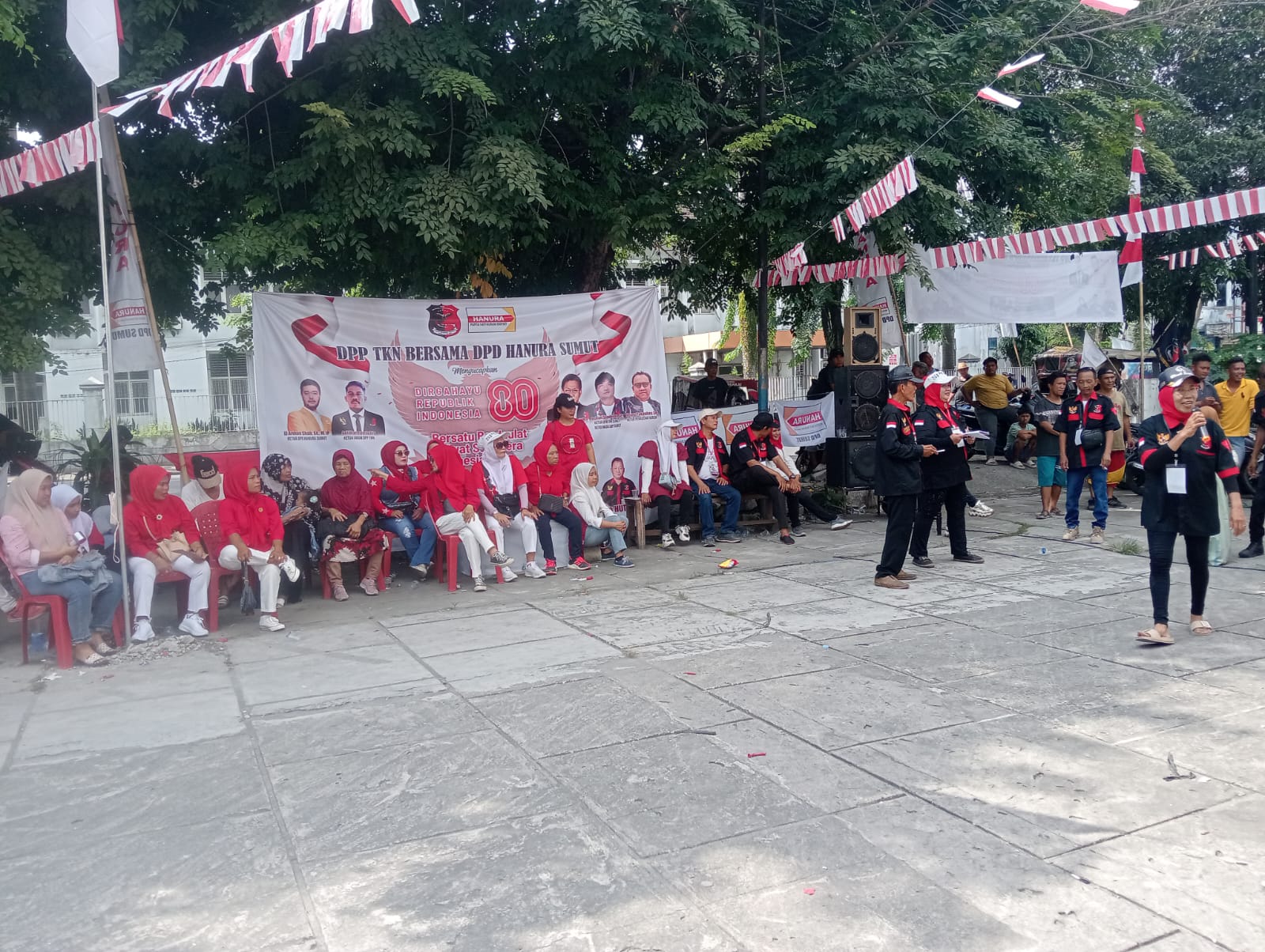 Medan, (Demon) Dewan Pimpinan Pusat (DPP) Tim Kenziro Kompas Nusantara (TKN), yang diketuai oleh Adiwarman Lubis, bersama dengan Dewan Pimpinan Daerah (DPD) Partai Hanura, menggelar acara perayaan Hari Ulang Tahun Republik Indonesia (HUT RI) ke-80 dengan penuh sukacita. Acara ini berlangsung di kantor DPP TKN, Jalan H.M. Yamin, Medan, pada hari Minggu, 17 Agustus 2025.