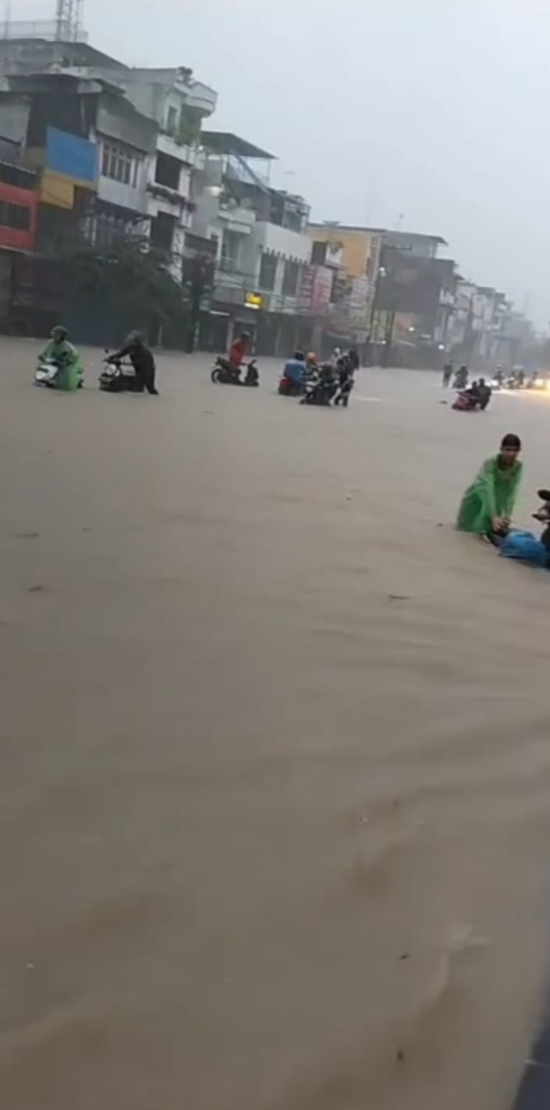 7. Jalan Letda Sujono pintu tol Bandar Selamat: Air tergenang hingga lutut orang dewasa.