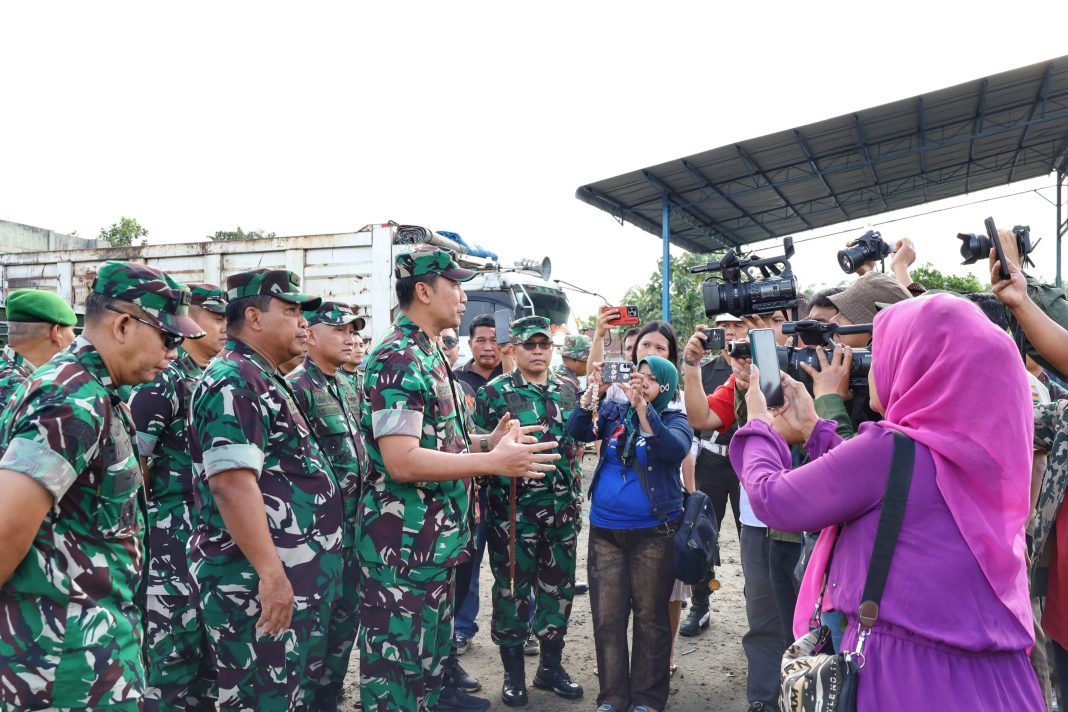 Medan | Detikmonitor.com – Pangdam I/Bukit Barisan Mayjen TNI Hendy Antariksa meninjau langsung proses pemindahan delapan unit Jembatan Modular Type 3-1 di Pool Bongkar Muat Titi Papan, Mabar, Kota Medan, Rabu (18/2/2026). Peninjauan dilakukan untuk memastikan seluruh material dalam kondisi lengkap sebelum didistribusikan ke daerah sasaran di Sumatera Utara.